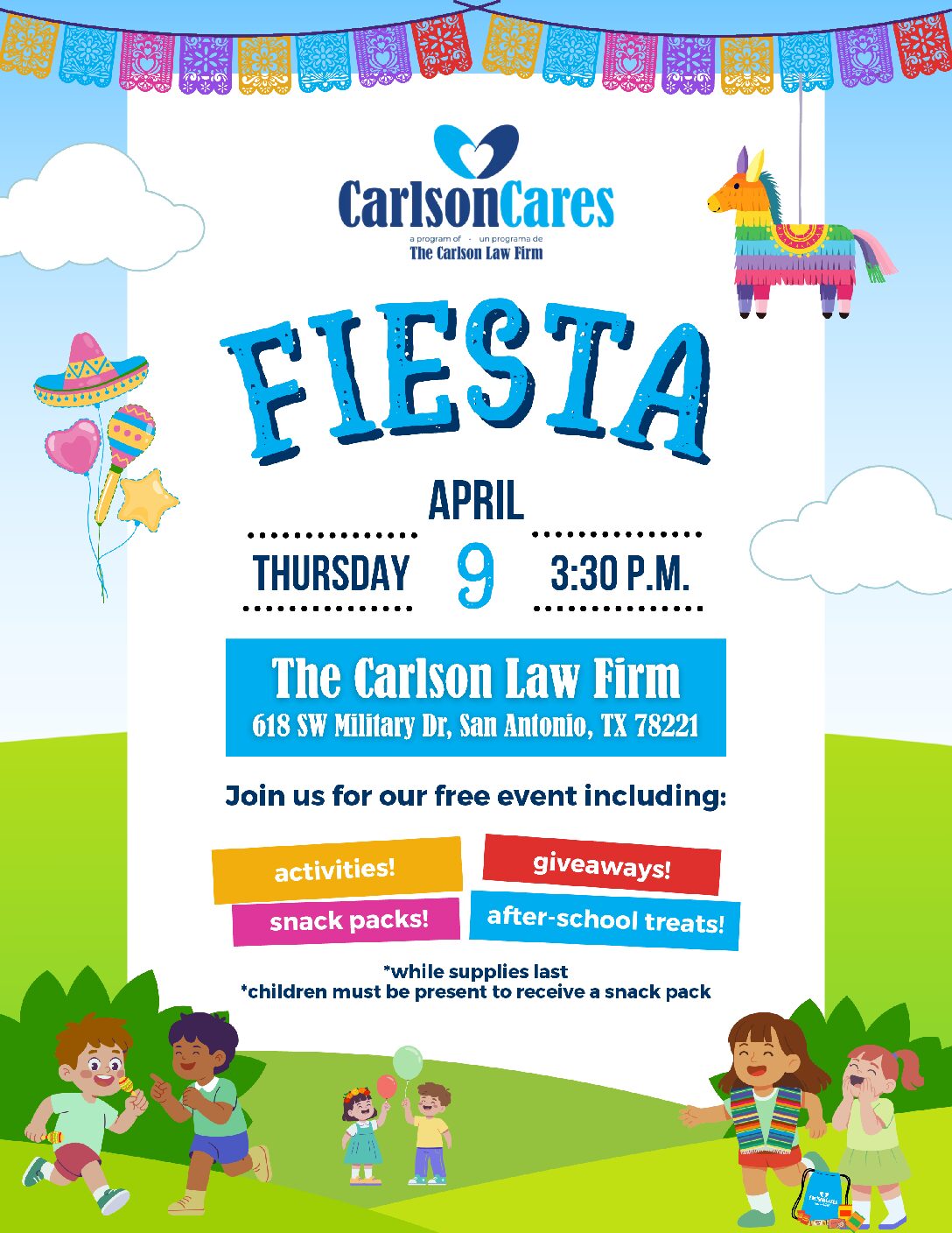 SAN ANTONIO, Texas – The Carlson will host a free community Fiesta event on Thursday, April 9 at 3:30 p.m. at its San Antonio office located at 618 SW Military Dr., San Antonio, TX 78221.