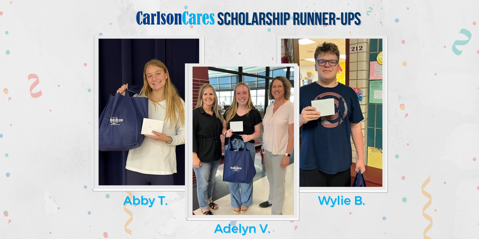 “We had a tremendous response to this year’s Carlson Cares Scholarship,” said Managing Partner Craig Carlson. “The candidates were strong, making the selection process extremely challenging. For that reason, this year, we decided to have runner-ups in addition to our scholarship recipients.”