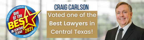 The Carlson Law Firm would like to extend a huge thank you to our home community in Killeen, Texas for voting us as the Best Law Firm in Killeen, Texas for 2021. In addition, we’d like to thank you for your votes to make sure our Managing Partner Craig Carlson was recognized as one of the best attorneys in Central Texas!
